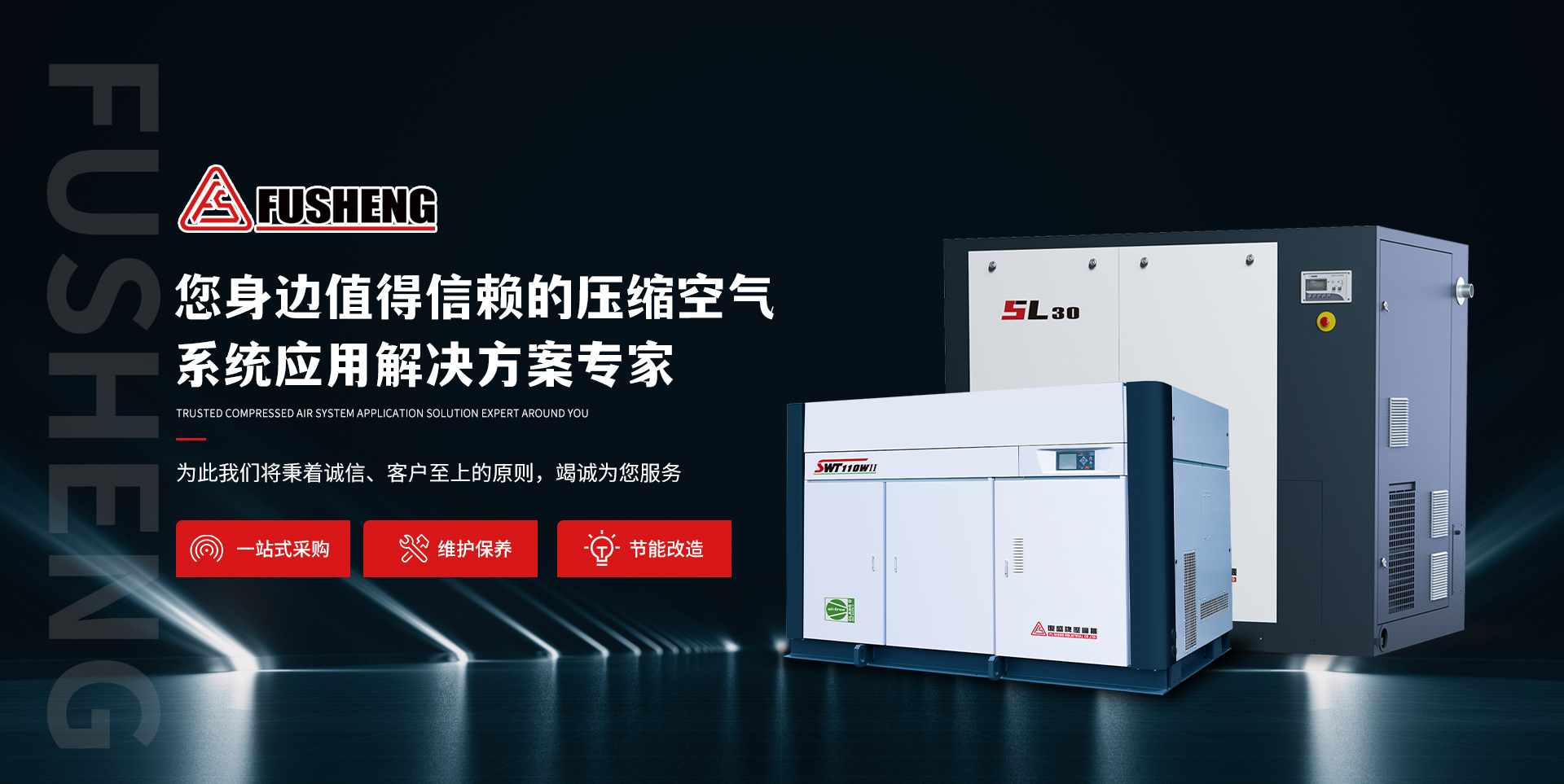 復盛集團于1953年在臺灣創立,在中國大陸、臺灣、東南亞、美洲、歐洲、中東及非洲設有多個生產、銷售及運營據點,是世界排名前列的空壓機生產商之一。自創立以來,復盛始終秉持“追求品質、豐富人生”的企業精神,歷經半個多世紀的風雨,沉淀了專業制造經驗,擁有高端的自動化設備,產品涵蓋整個壓縮機領域,從有油到無油,從固定到移動,從容積式到動力式,從空氣到冷媒,從通用領域到專業領域為您提供一系列完善可靠的整體解決方案。近年來,公司通過資本運作,與世界多家專業廠商,如:美國Curtis、Elliott、以并購、合資、戰略聯盟等多種方式,整合全球資源,豐富產品線。德國的工程技術,美國的巧妙構思,日本的精湛工藝——復盛以高度的專業性提供最適合您的壓縮機產品。體貼的服務一直是復盛公司服務體系的中心。目前復盛公司在中國大陸有北京、上海、中山三個生產基地,以南、北、中覆蓋整個中國,分公司及辦事處分佈于全國各省市。複盛特約經銷服務商更是遍及全國,那裡擁有經嚴格培訓的持證維護人員,以及充足的正廠零備件,可以就近、迅速為您提供高品質的產品及服務,確保您的權益。您的盈利、較低的總運營成本以及設備的最 大可靠性是復盛優先考慮的因素。複盛將本著“精益求精”的理念,為向您提供最周到的服務而不斷努力。復盛,您身邊的壓縮機和節能專家!